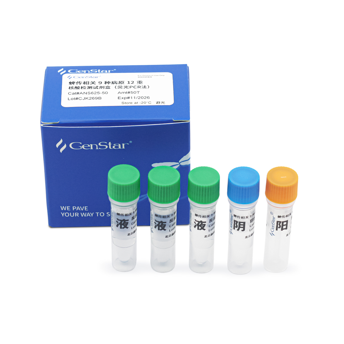 | 蜱传-多重 | 蜱传相关8种病原11重核酸检测试剂盒(荧光PCR法) 大别班达病毒(S/M/L基因)、克里米亚刚果出血热病毒、森林脑炎病毒、斑点热群立克次体、查菲埃立克体、嗜吞噬细胞无形体、伯氏疏螺旋体、回归热螺旋体 | ANS624-25 | 25 T |